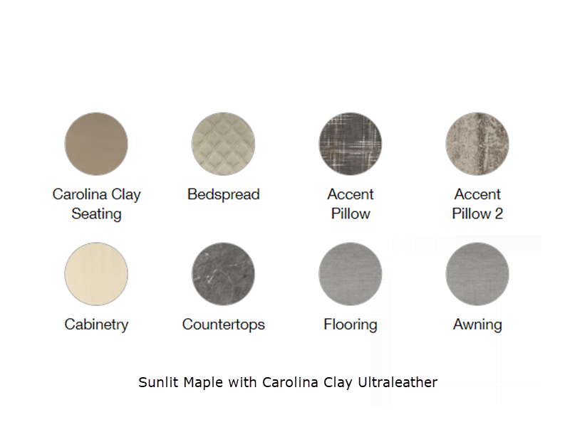 Sleeps 6 Length 28 ft 2 in Ext Width 8 ft 6 in Ext Height 9 ft 7 in Int Height 6 ft 7 in Interior Color Sunlit Maple with Seattle Mist, Sunlit Maple with Carolina Clay Hitch Weight 860 lbs GVWR 7600 lbs Dry Weight 5900 lbs Cargo Capacity 1700 lbs Fresh Water Capacity 39 gals Grey Water Capacity 37 gals Black Water Capacity 35 gals Tire Size ST225/75R15 Furnace BTU 30000 btu Available Beds RV Queen Refrigerator Type 12V Electric w/Freezer Refrigerator Size 8 cu ft Cooktop Burners 3 Number of Awnings 1 LP Tank Capacity 30 lbs Water Heater Type Tankless On Demand LP AC BTU 15000 btu TV Info LR 27" 12V DC Smart TV, BR 24" 12V DC Smart TV Awning Info Manual ZipDee with Sunbrella Fabric and LED Dimmable Light Axle Count 2 Number of LP Tanks 2 Shower Type Standard Electrical Service 30 amp Similar Floorplans