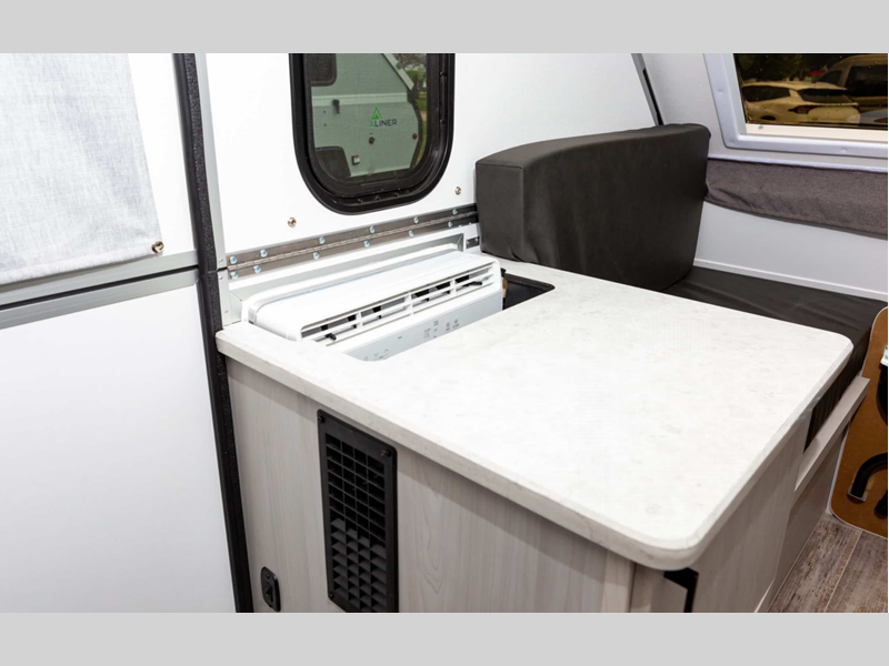 Aliner Ranger A-frame camper 10 Rear Dinette highlights: Rear Dinette Storage ... more about Ranger 10 Rear Dinette