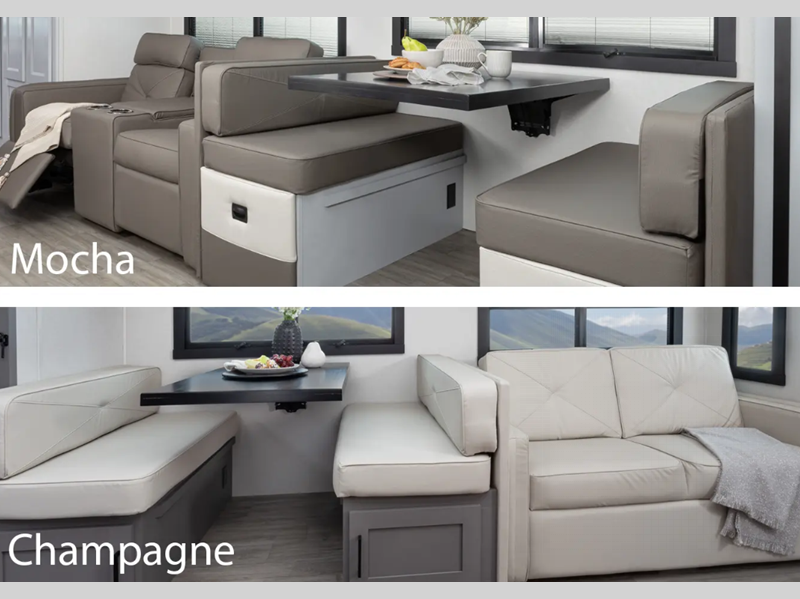 Sleeps 6 Slides 2 Length 36 ft 10 in Ext Width 8 ft 6 in Ext Height 12 ft 5 in Interior Color Champagne, Mocha Exterior Color Partial Paint Option. Full Body Paint; Glaucous, Graphite, Scarlet. Night Moves (Limited) Hitch Weight 8000 lbs GVWR 22000 lbs Fresh Water Capacity 70 gals Grey Water Capacity 45 gals Black Water Capacity 45 gals Tire Size 22.5" Furnace BTU 30000 btu Generator 5.5kw Gas Fuel Type Gasoline Engine 7.3L V8 Chassis Ford F53 Horsepower 350 hp Fuel Capacity 80 gals Wheelbase 242 in Number Of Bunks 1 Available Beds King Torque 468 ft-lb Refrigerator Type Stainless Steel Residential Cooktop Burners 3 Shower Size 38" x 24" Number of Awnings 1 Axle Weight Front 8000 lbs Axle Weight Rear 15000 lbs LP Tank Capacity 84 lbs Water Heater Type On Demand TV Info LR 50" Smart TV, BR 32" LED TV, Ext. LED TV Awning Info 20' Power Washer/Dryer Available Yes Gross Combined Weight 26000 lbs Shower Type Standard Electrical Service 50 amp Similar Floorplans