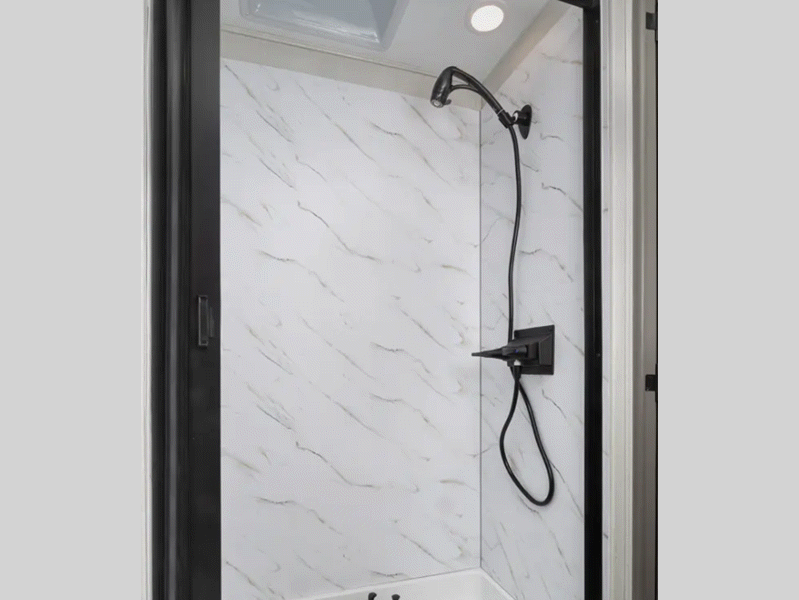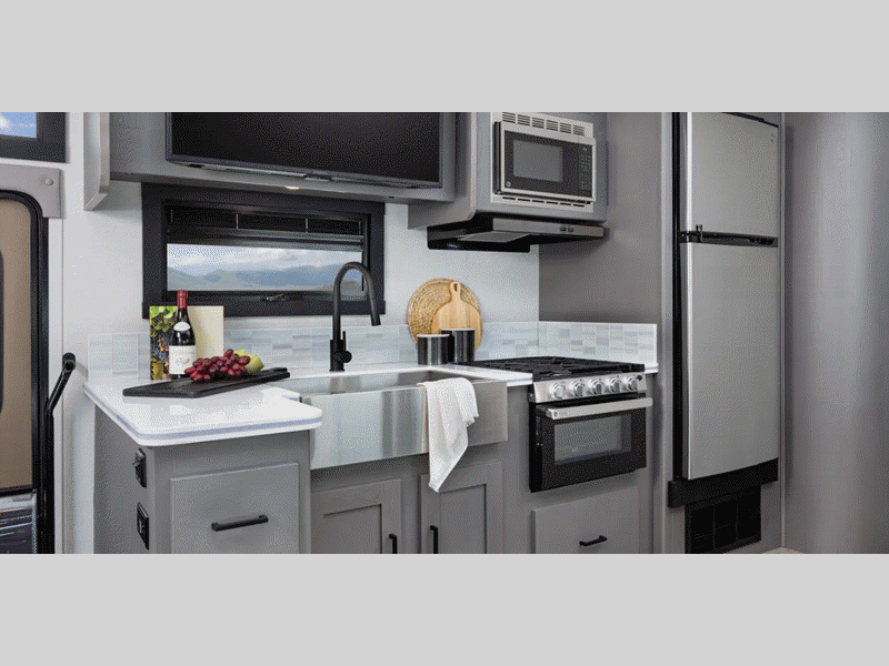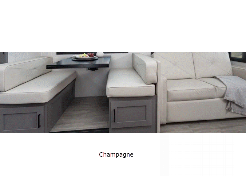 Sleeps 7 Slides 2 Length 33 ft Ext Width 8 ft 6 in Ext Height 12 ft Interior Color Champagne, Mocha Exterior Color Dove Grey Hitch Weight 5000 lbs GVWR 18000 lbs Fresh Water Capacity 50 gals Grey Water Capacity 38 gals Black Water Capacity 38 gals Furnace BTU 30000 btu Generator 5.5 kW Gas Fuel Type Gas Engine 7.3L V8 Chassis Ford Horsepower 335 hp Fuel Capacity 80 gals Number Of Bunks 2 Available Beds RV King Torque 468 ft-lb Refrigerator Type 12V Stainless Steel Double Door Refrigerator Size 10 cu ft Cooktop Burners 3 Shower Size 26" x 38" Number of Awnings 1 Axle Weight Front 7000 lbs Axle Weight Rear 12000 lbs LP Tank Capacity 84 lbs Water Heater Type On Demand TV Info LR 40" Smart TV, BR LED TV, Ext. LED TV Awning Info 17' Power Washer/Dryer Available Yes Gross Combined Weight 23000 lbs Shower Type Standard Electrical Service 50 amp Similar Floorplans